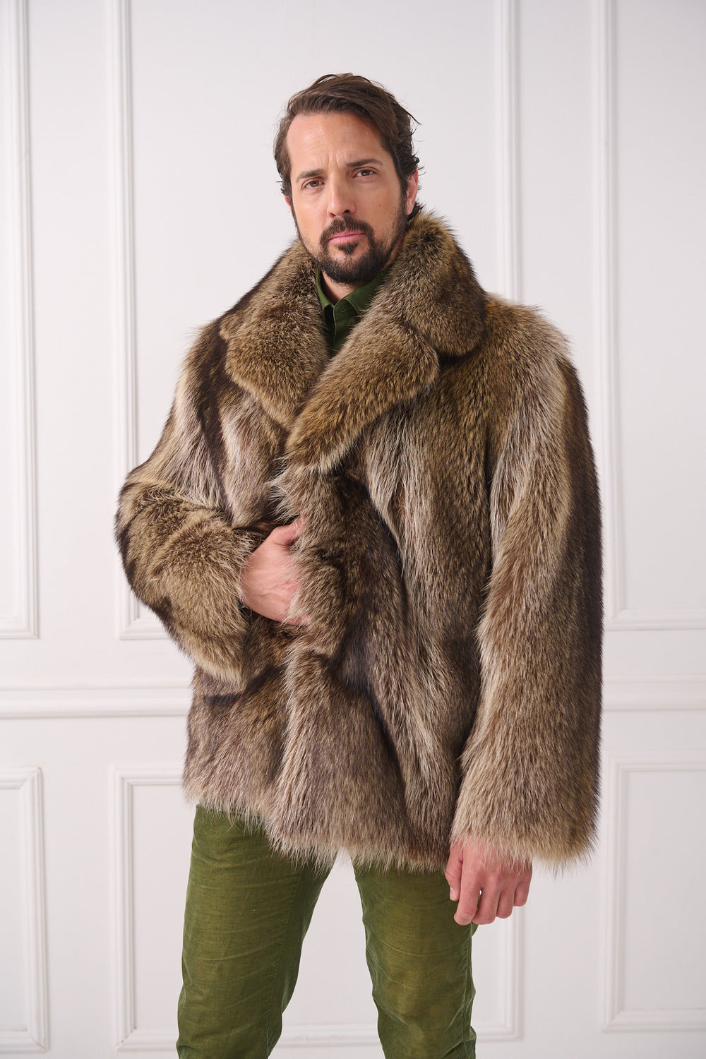 Herrenjacke aus Waschbärfell mit Fuchskapuze