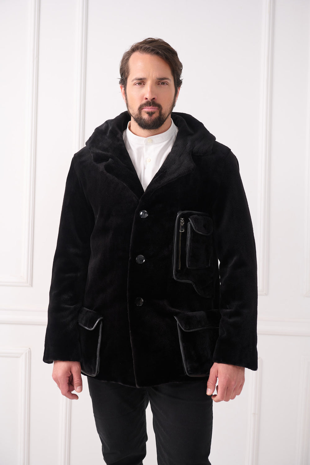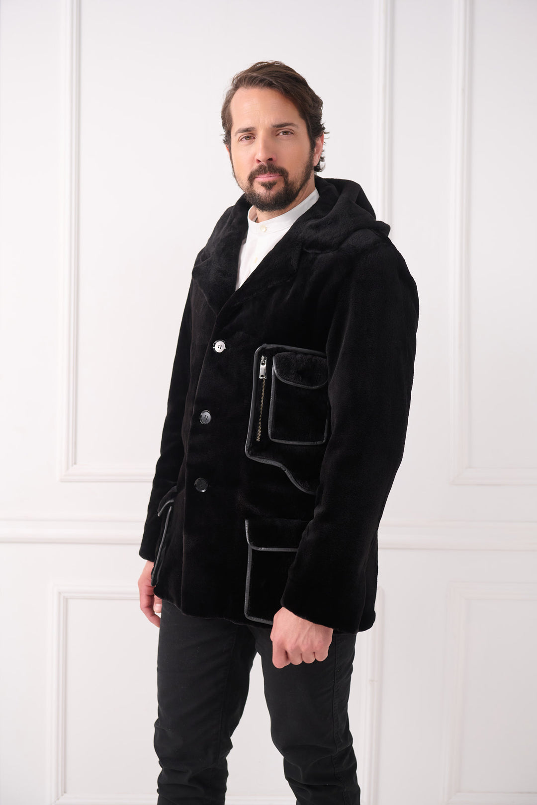 Herrenjacke aus geschorenem Nerz mit Kapuze