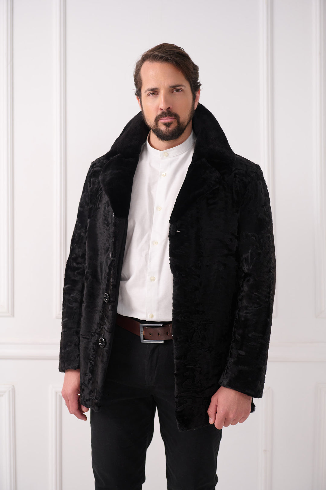 Herren doppelseitiger, doppelt geknöpfter Mantel aus geschorenem Nerz