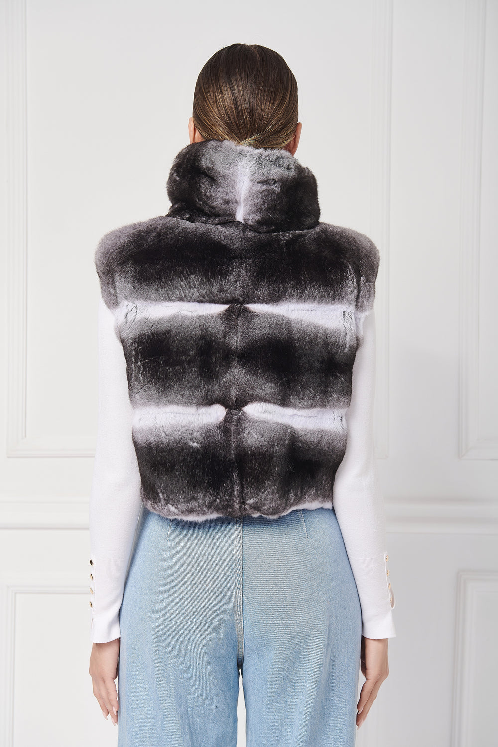 ЖИЛЕТ ИЗ МЕХА ШИНШИЛЛЫ С ВОРОТНИКОМ-СТОЙКОЙ